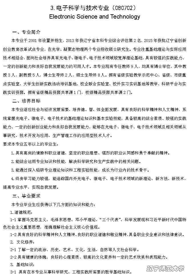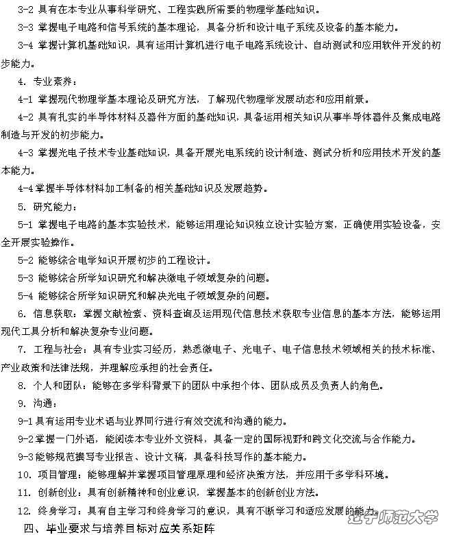 电子科学与技术专业本科人才培养方案