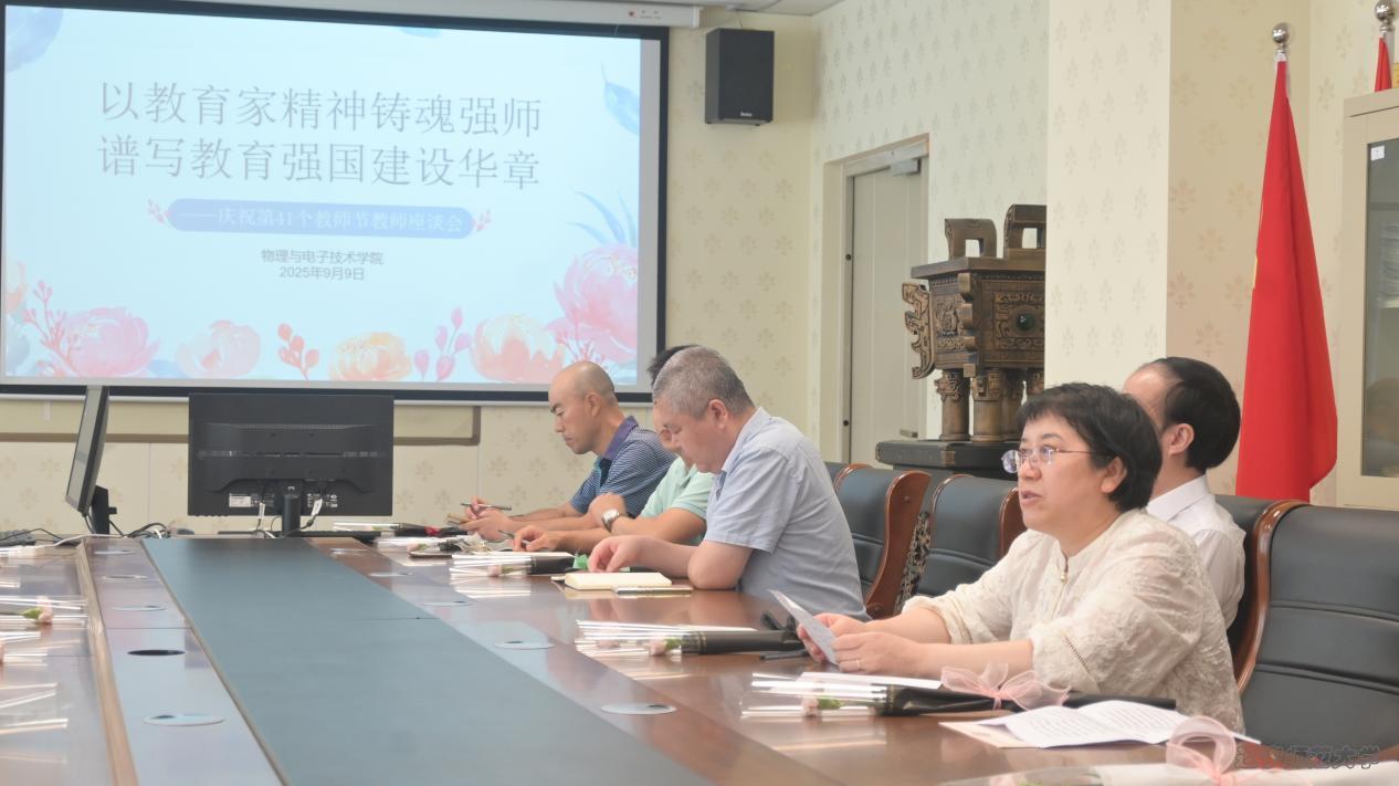 9月9日下午,在第41个教师节来临之际,有球体育(中国)官方在线登录召开“以教育家精神铸魂强师 谱写教育强国建设华章”教师座谈会。学院领导、全体教师齐聚一堂,共庆教师节,共话教育情。